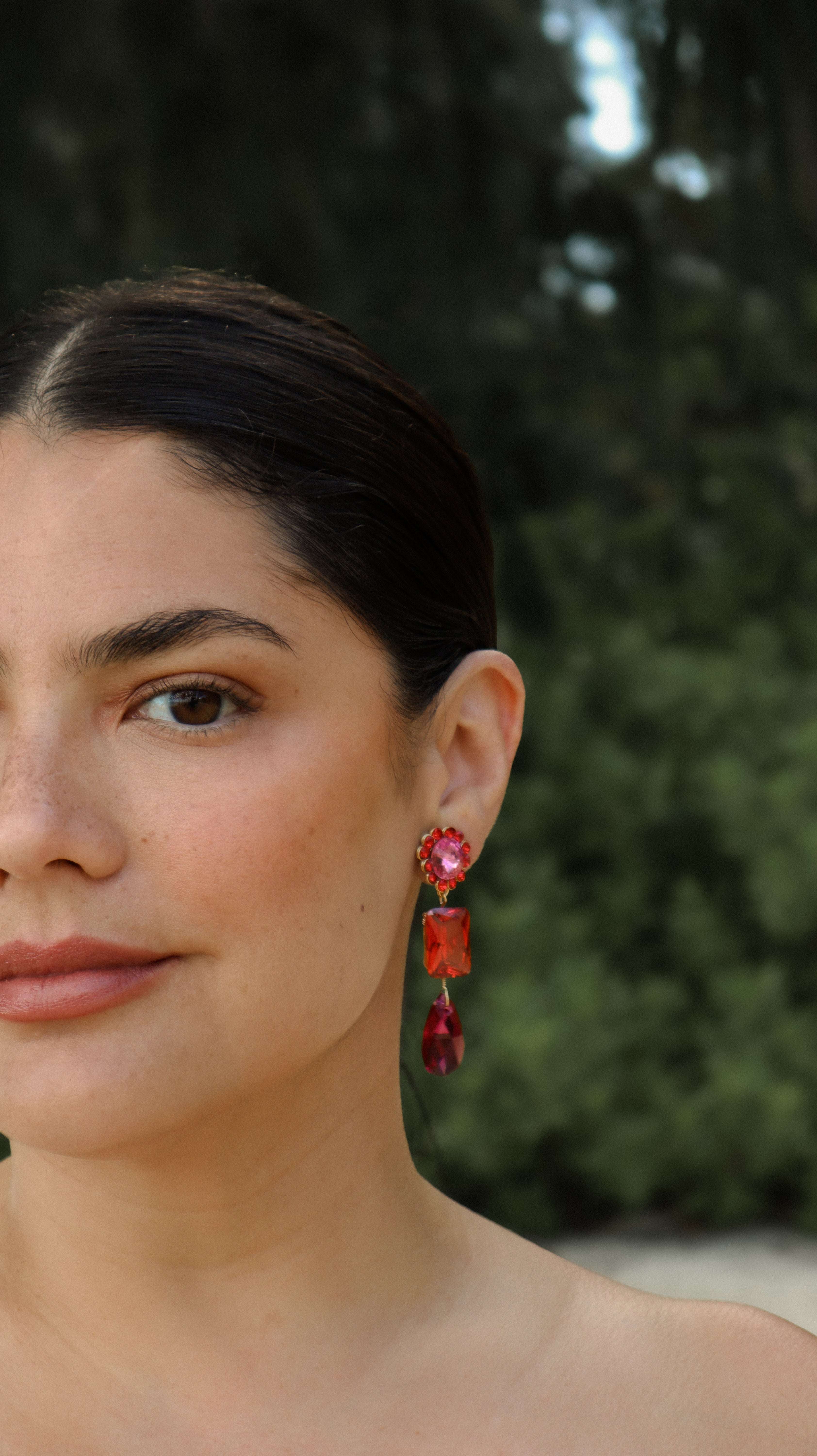 Cada par está hecho a mano en Perú con cristales premium y técnicas artesanales que realzan el brillo y la profundidad del color.