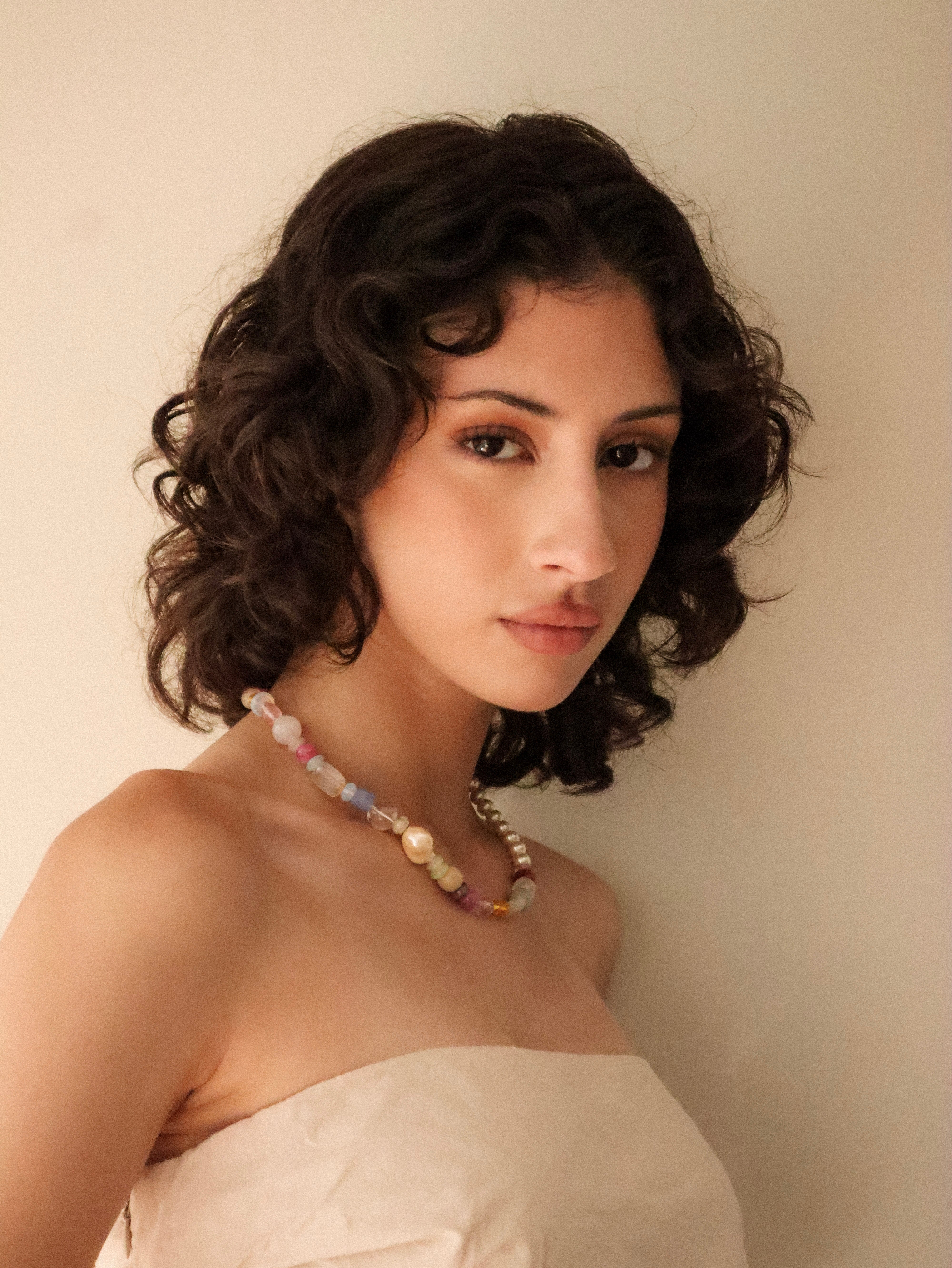 BRUMA es delicadeza moderna: perlas, tonos pasteles y una ligereza casi etérea.