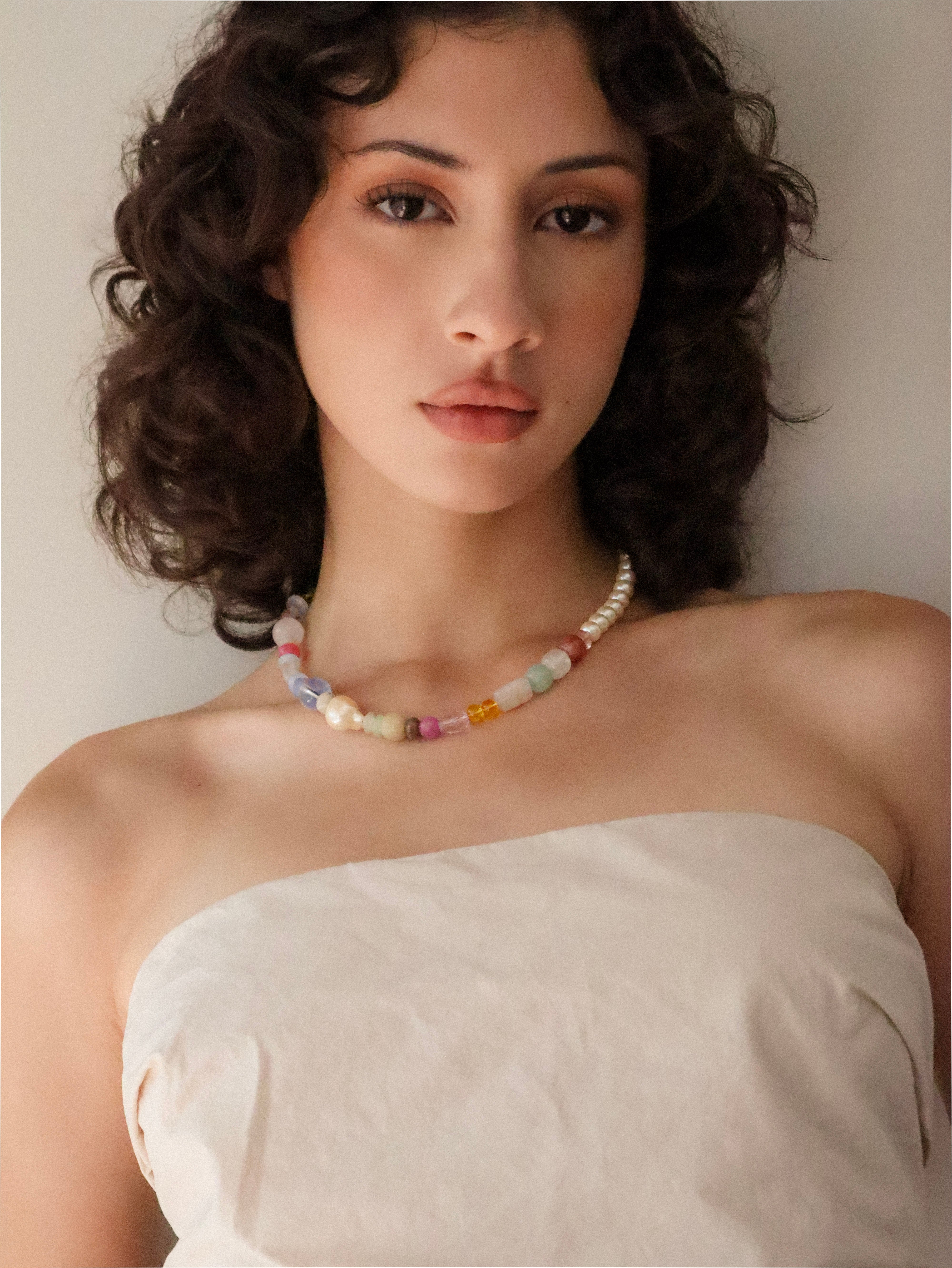 Material del collar: piedras naturales, Perlas checas, con apliques en acero.