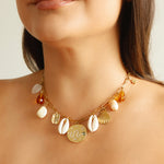 Material utilizado: muranos, charms de acero con baño en oro, perlas de río, piedras de nacar.