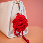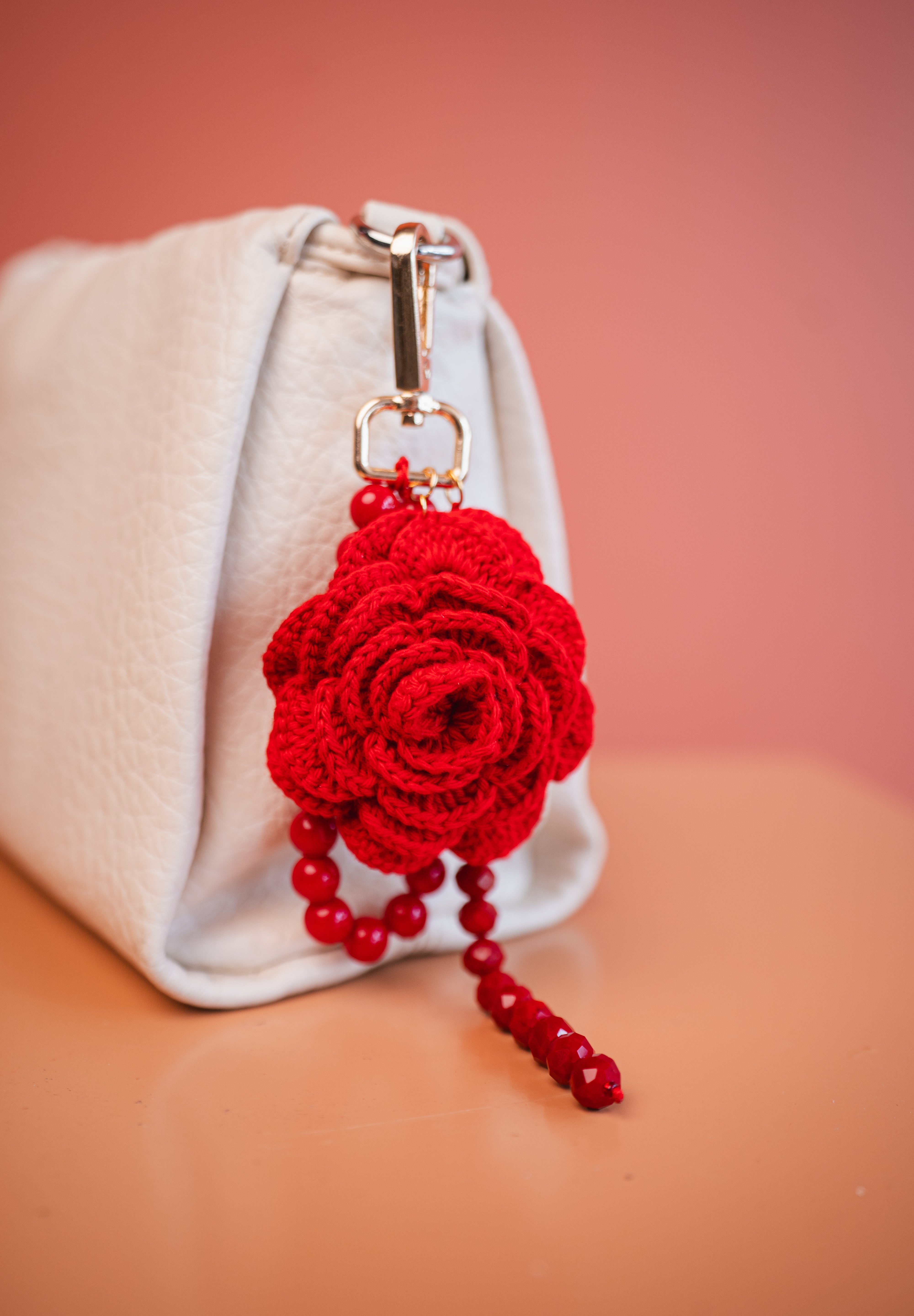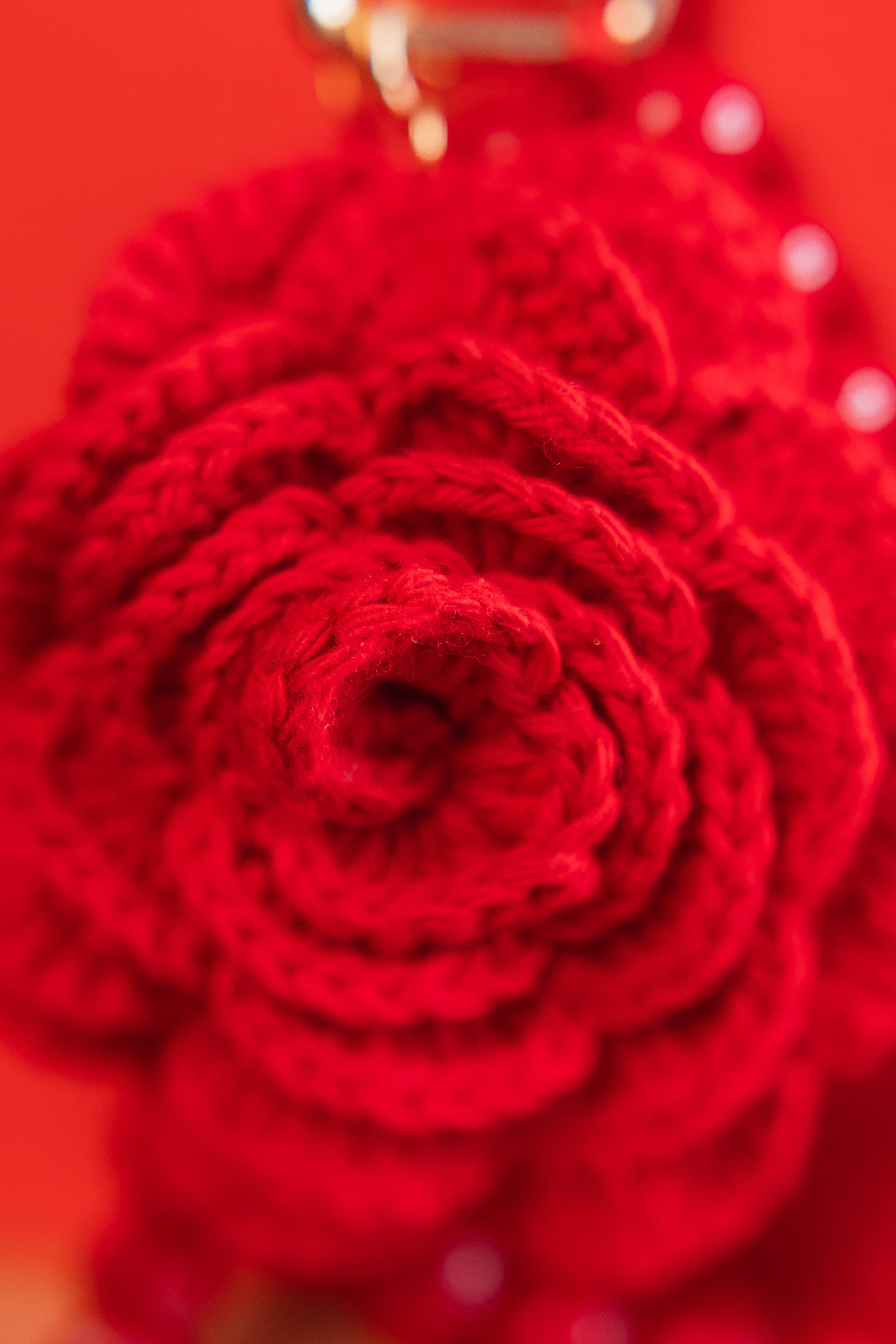 Un gesto intenso, elegante y lleno de intención: tejido a mano, con una flor construida punto por punto y detalles ensamblados manualmente, es una pieza que habla de afecto, dedicación y permanencia.