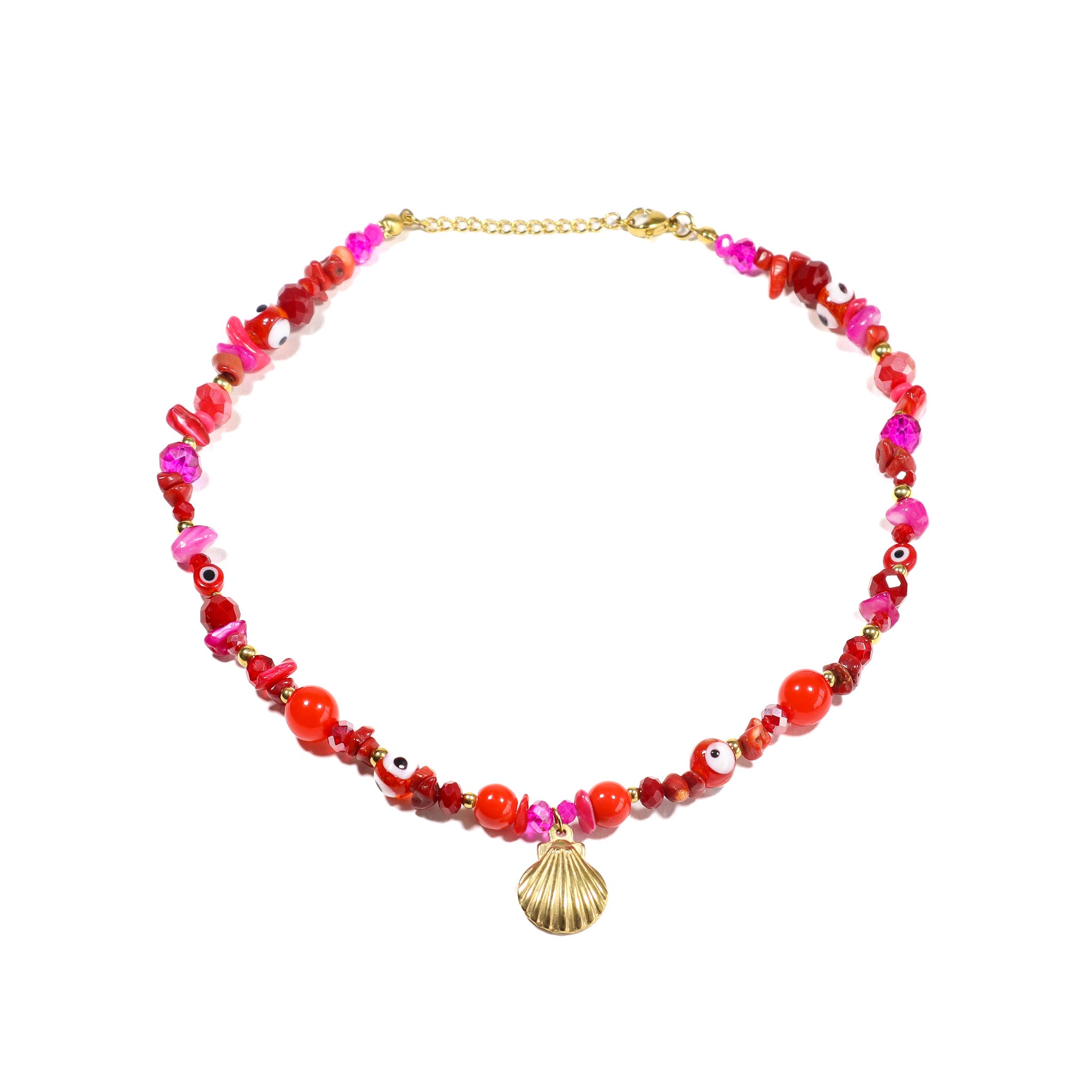 Necklace material: River pearls, villas, steel appliqués, natural stones.
